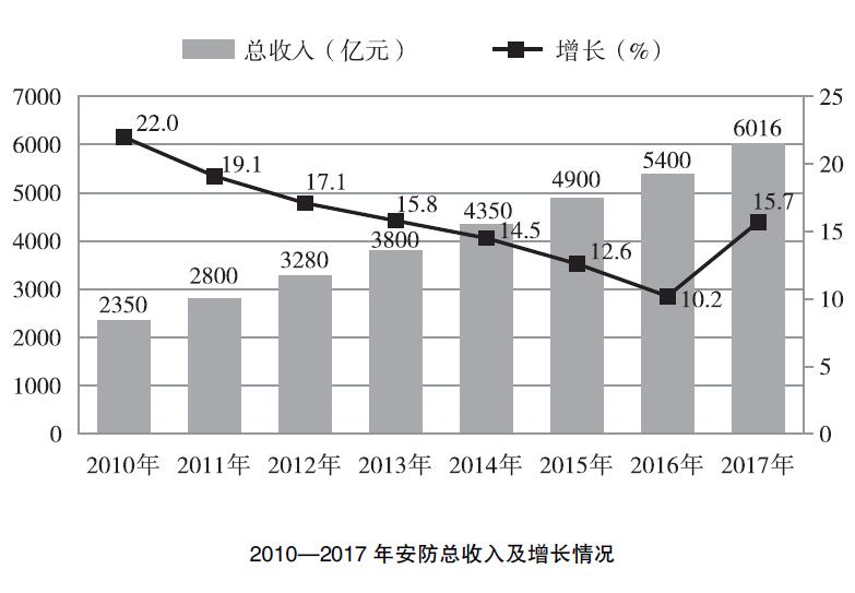 据不完全统计,截至2017年年底,中国安防企业约为3万家,从业人员达到160万人,安防企业年总收入达到6016亿元左右,年均增长15.7%;2017年全行业实现增加值1960亿元,年均增长12.7%。